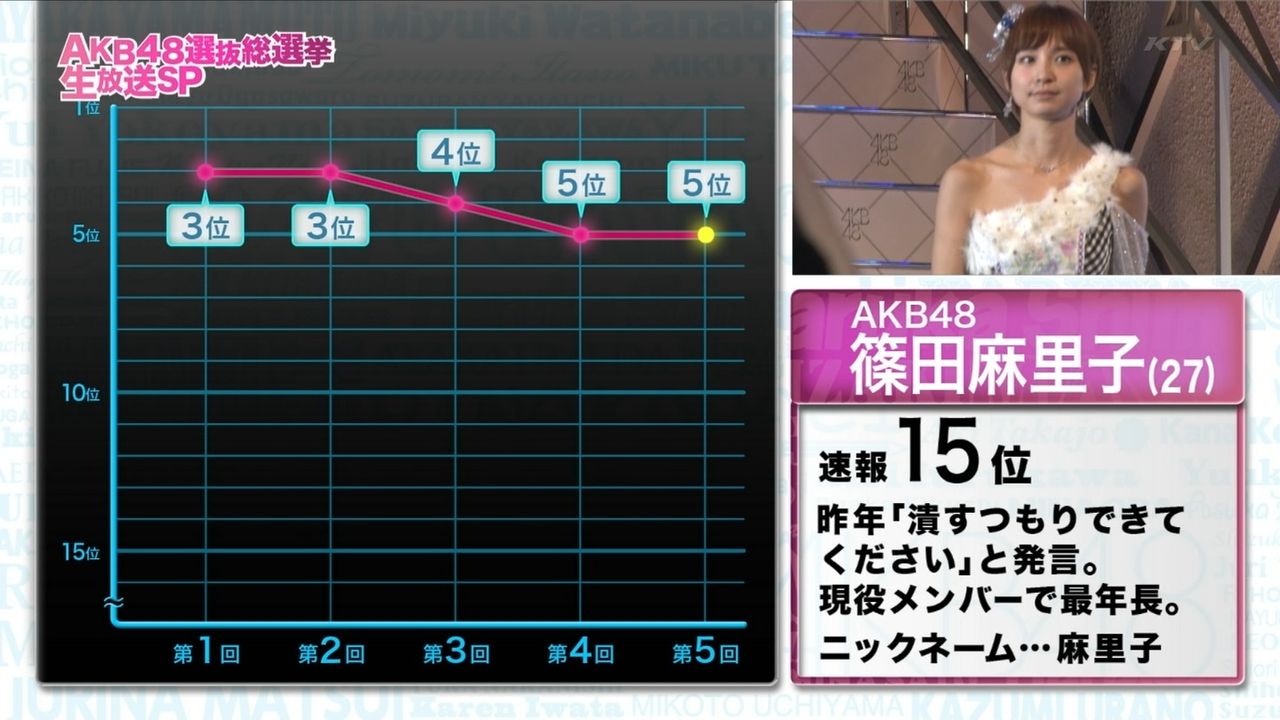 ことしは指原莉乃が圧倒的な強さを見せつけたAKB48の総選挙。篠田麻里子さんはことしの総選挙でも5位という安定の実力と人気を見せつけた。